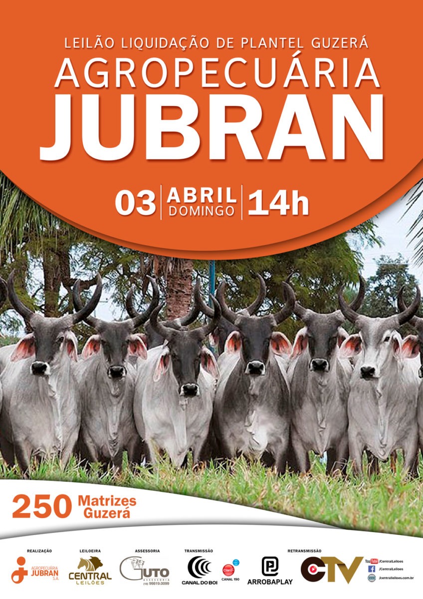 LEILÃO LIQUIDAÇÃO DE PLANTEL GUZERÁ AGROPECUÁRIA JUBRAN