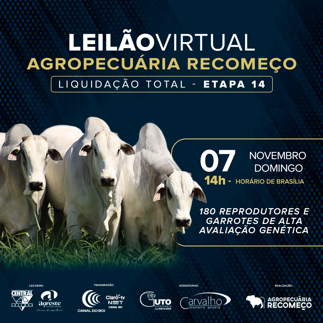 LEILÃO VIRTUAL AGROPECUÁRIA RECOMEÇO – LIQUIDAÇÃO TOTAL – ETAPA 14